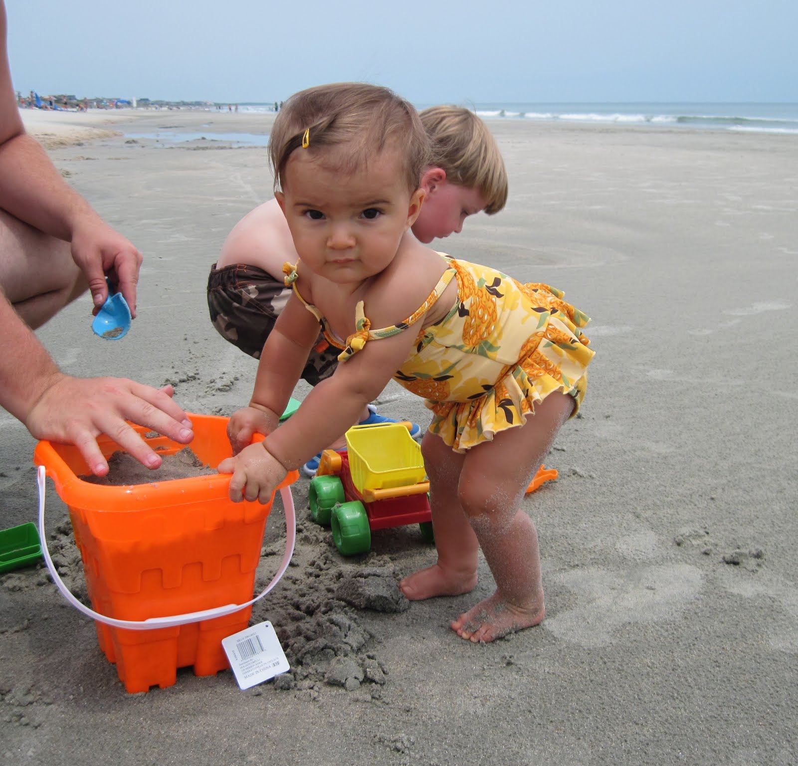 In the mean time, Spence loved his day at the beach and everyday after. She did too and you would have never known she was not feeling well. She's a trooper and going to be a very tough girl! Jaidyn loved to try to eat the sand and I really thought that after the first bite of it, she would stop, but no. I had to constantly keep her hands out of her mouth and watch her. Spence loved playing with his beach toys and everyone else's. He loved going out into the waves with his daddy and was not scared at all of the ocean. We will definitely be making a trip to the beach at least once a year!